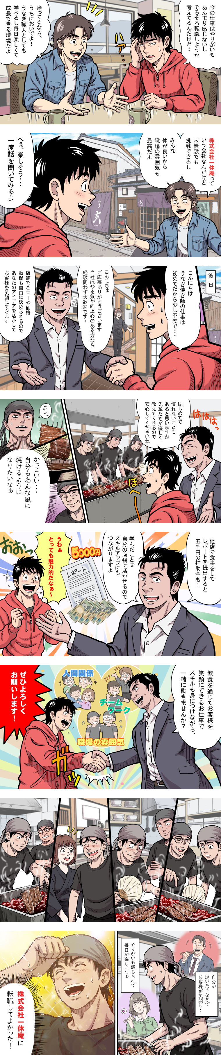 うなぎ職人、店長候補、和食職人など、成長に応じたキャリアパスを用意しております。「やる気次第でステップアップできる」環境があります。