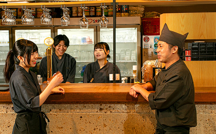 仲間と一緒に、接客や料理を通じてお客様に喜ばれる毎日を送りながら、自分自身も輝ける職場です。